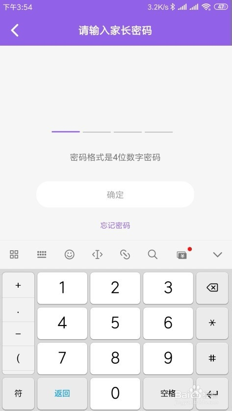接着会弹出请输入家长密码的页面,在页面中输入家长的办理密码
