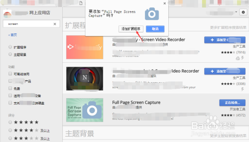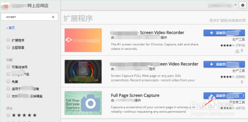 在左边搜索框中输入关头词“screen”进行搜刮,在搜刮成果中选择一个本身想要的应用,点击“添加至Chrome”。