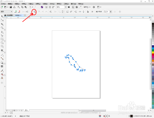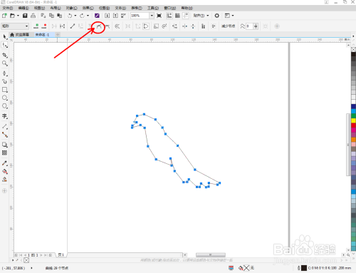 点击【外形东西】,框选图案上的节点,点击【转化为曲线】将节点转曲。完当作后,选中图示图案上的节点,点击【光滑节点】将节点进行光滑处置并调整好节制点,完当作同党图案的建造(如图所示);