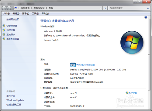 计较机图标右击点击“属性”,打开计较机系统窗口;