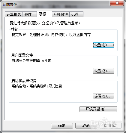 系统属性对话框主动打开,并且主动定位到“高级”选项卡;