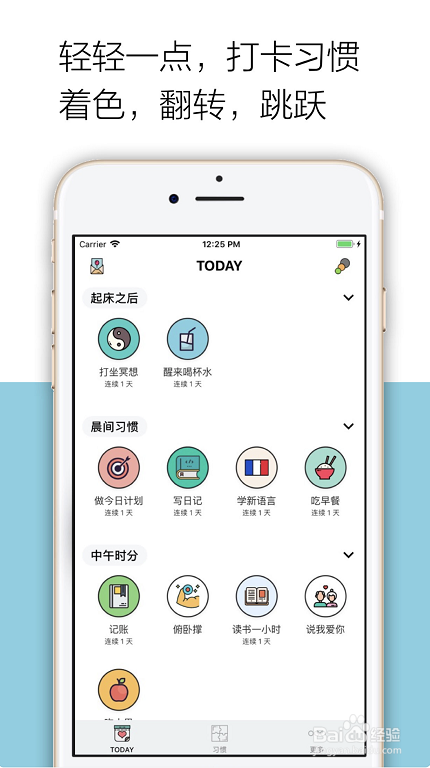 成立打开项目,即可天天督促、办理本身打卡,完当作即可获得精彩小卡片,设计简练,还有记实天天打卡时候的时候线。