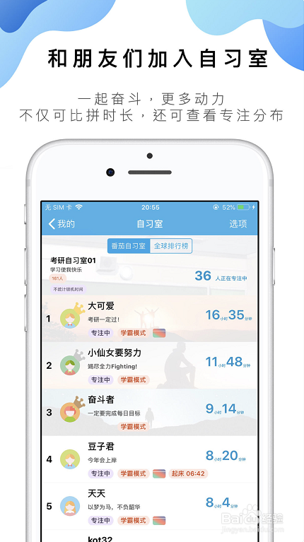有专门用于进修的直播间,大师进房间直播本身的进修状况,抱团进修,彼此监视,还有进修时候记实、进修排行。