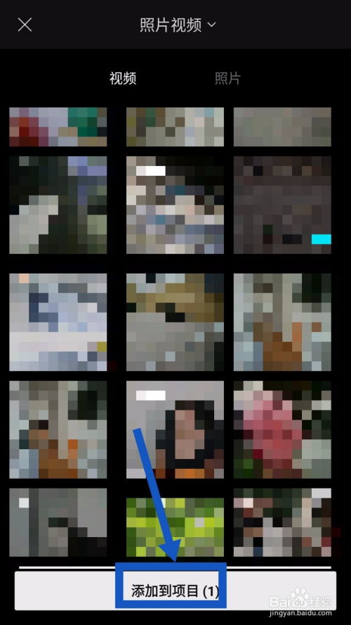 在打开的界面,选摘要添加特效的视频,点击底部的添加到项目。如图所示