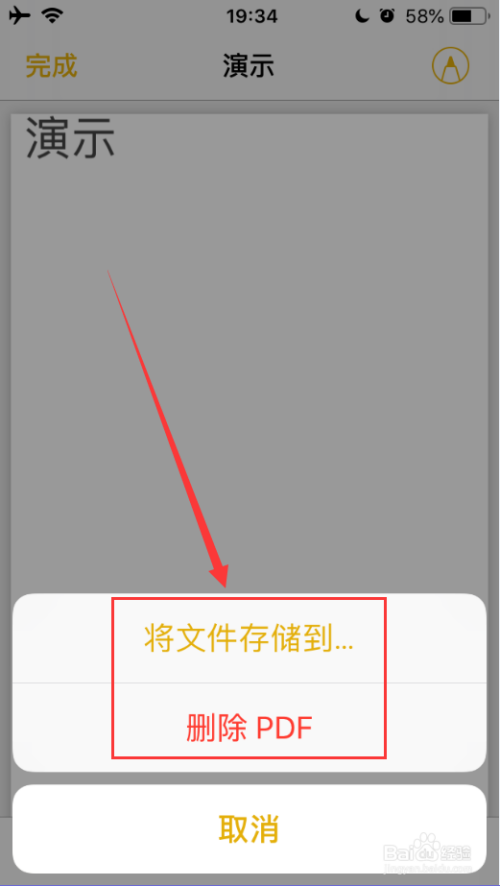 在弹出的菜单中,选择“将文件存储到…”,即可将PDF文件保留到云盘或手机文件中;选择“删除PDF”,就可以或许将建立的PDF文件删除。
