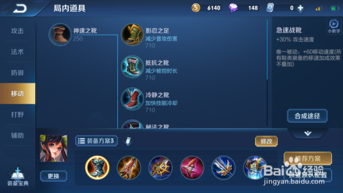 随后就是我们的第一件装备了,保举大师可以选择我们的攻速鞋子。