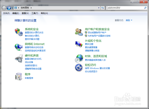 打开Windows 7专业版系统节制面板;