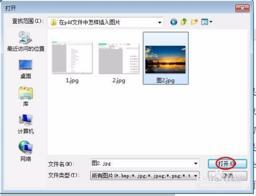 第三步:选择需要添加到pdf中的图片,单击“打开”按钮。