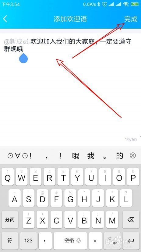 接下来在打开的添加接待语的页面中输入接待语内容,然后点击完成按钮就可以了