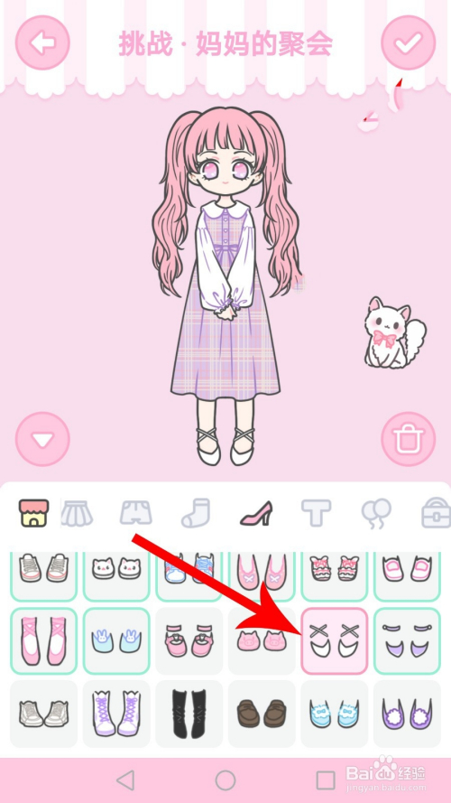 最后打开饰品界面,然后点击粉红色心型装扮发夹,这时点击“√”提交即可过关