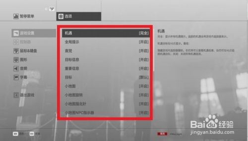 再然后,我们就可以在这里看到这条目游戏中所有的相关设置、机制了。