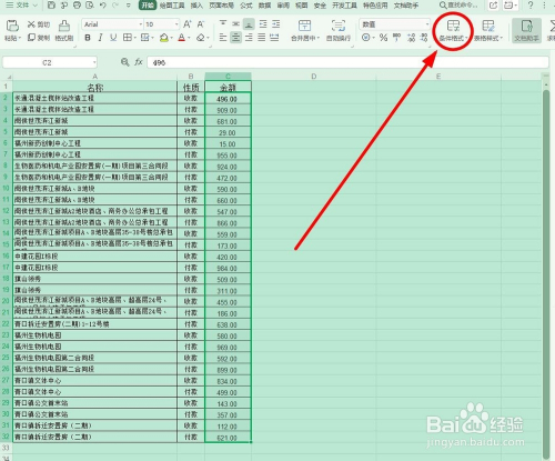选中成就列地点的数据,找到菜单栏“前提格局”单击