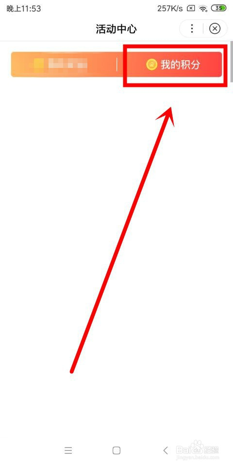 进入到活动中间这个页面中之后,在该页面的右上方位置我们找到我的积分这个选项,点击进入。