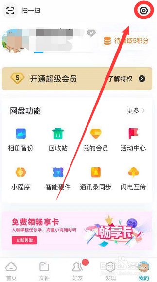首先,打开百度网盘,在首页右下角点击我的,进入我的界面