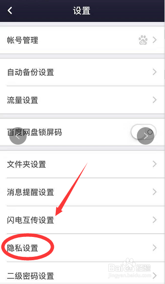 在设置界面,点击隐私设置,进入隐私设置的界面