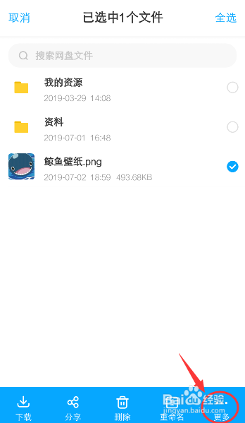 返回网盘文件后,再次从头选择文件,再点击“更多”,点击【移入埋没空间】(就是本篇第1~3步调)。