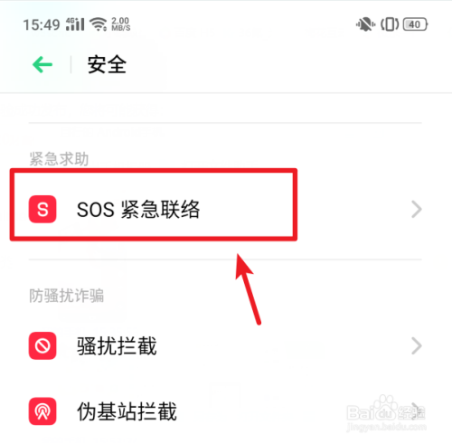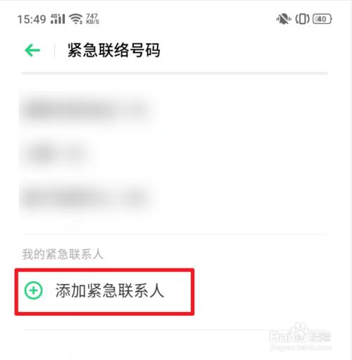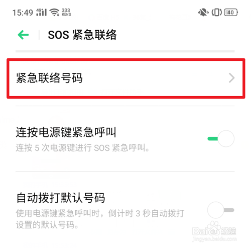赞成后在设置界面,我们点击告急联络号码的选项。