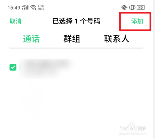 进入告急联系人添加界面,可以在通话记实中,或者群组中,或者联系人内选择需要设置的告急联系人,设置后点击添加。