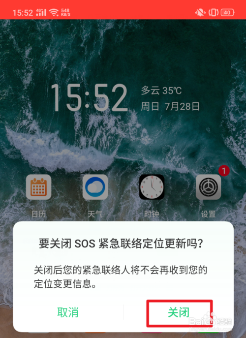若是需要封闭SOS告急联络,也可以点击顶部的红色区域。