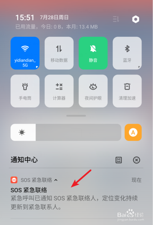 设置完毕后,在告急状况下可以持续按下5次电源键,即可激活SOS告急联络办事,激活后通知中间会有显示。