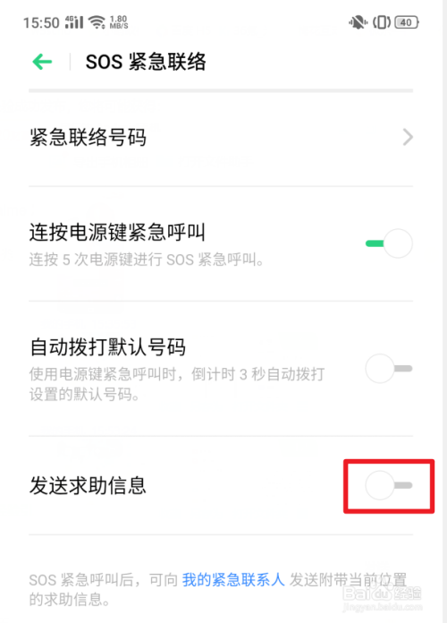 添加完毕后,在告急联络界面,也可以点击发送乞助信息后方的开关。