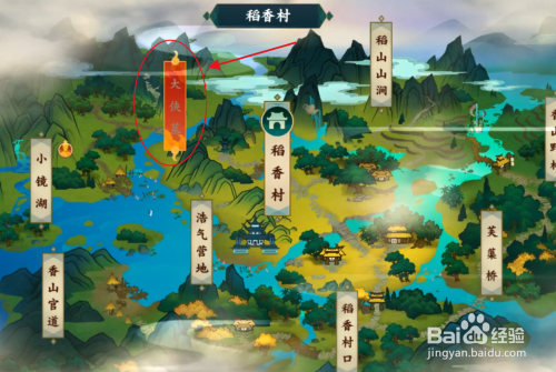 随后我们就是需要回到稻喷鼻村,我们到做右边的这个处所,我们进入之后就可以直接往下走了,到了这个处所就可以了!然后就是开启心眼就可以看到我们的NPC聊天了!