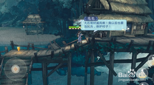 第一个处所就是做左边的一个水上的茅房,然后我们开启心眼就是可以看到毛毛在聊天,然后聊完天即可到下一个处所。