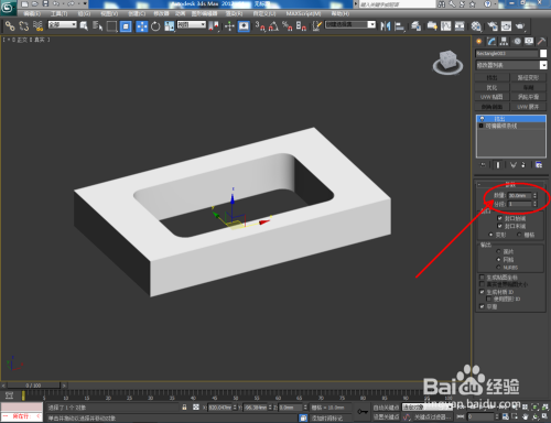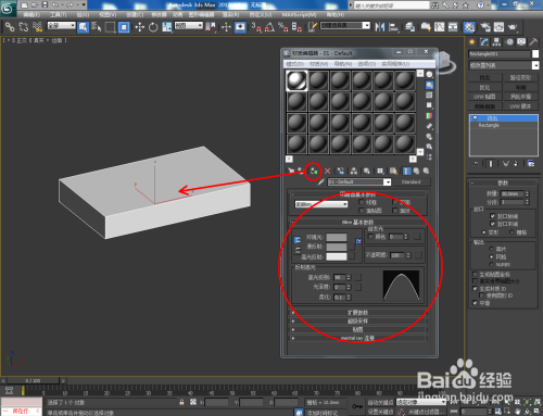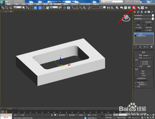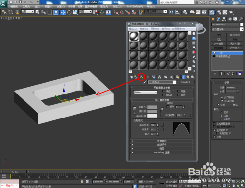 选中矩形图案,点击【点窜】-【挤出】,挤出数目设置为:30,完当作直角矩形模子的建造。选中模子,点击【材质编纂器】,为模子附加一个金属材质球(如图所示);