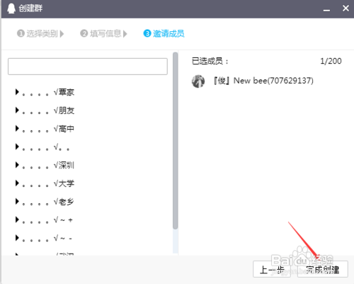 你可以邀请你的老友进群,若是你只是为了处置私密照片,不想别人看见,那么就不要邀请人,直接点击“完当作建立”。