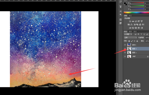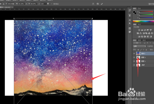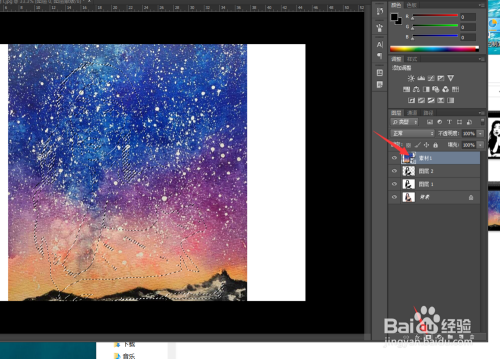 接着,我们将筹办好的星空图片素材透露到ps操作区域中,让其笼盖在人物图层之上。