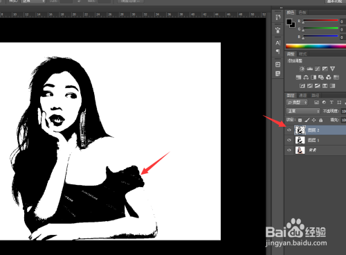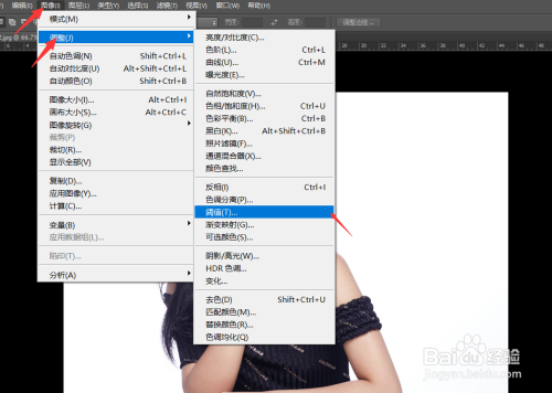 接着我们点击这个图层,点击上方的图像,调整,调整阈值。