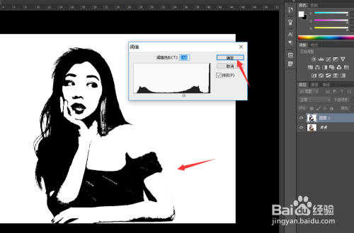 在调整阈值页面,我们让其颜色加倍集中,我们标识出来,然后点击确定。