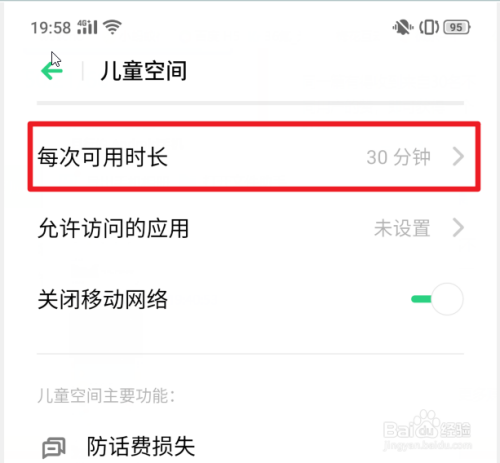 - ②、儿童空间每一次利用时长,不撑持自界说输入时长。