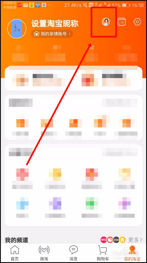 进入淘宝首页,切换到【我的淘宝】页面;