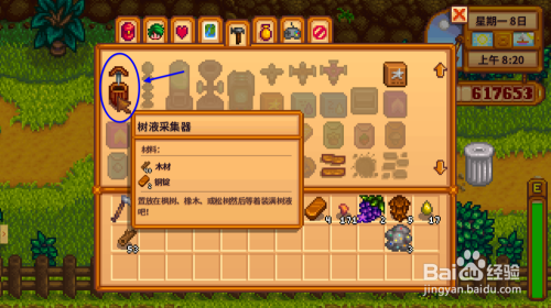 星露谷物语里的枫糖浆是靠采集的,首先必需建造树液采集器。