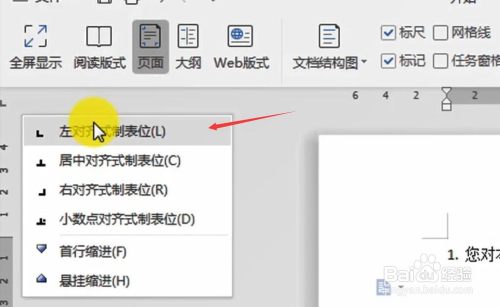 接下来,在横标的目的标尺的左边,选择一种制表位,我们选择左对齐制表位,然后按照本身的需要在标尺上添加制表位,