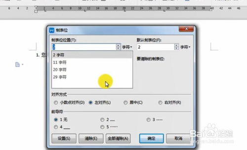 可以双击制表位打开设置框,每个制表位的值都呈现在这里。