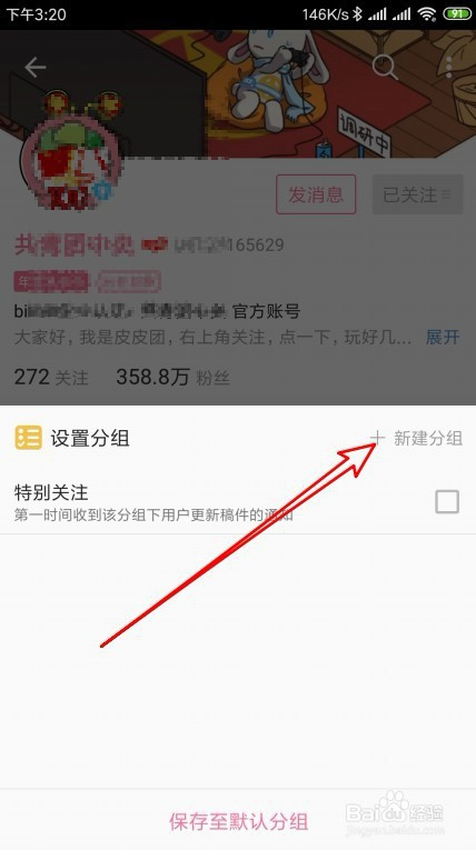 接下来在弹出的设置分组页面中,我们点击新建分组的按钮