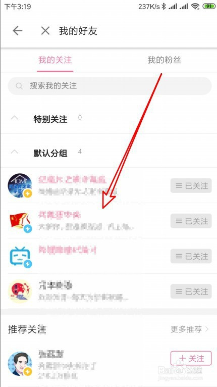这时就会打开存眷老友的详情页面,点击已存眷的下拉按钮