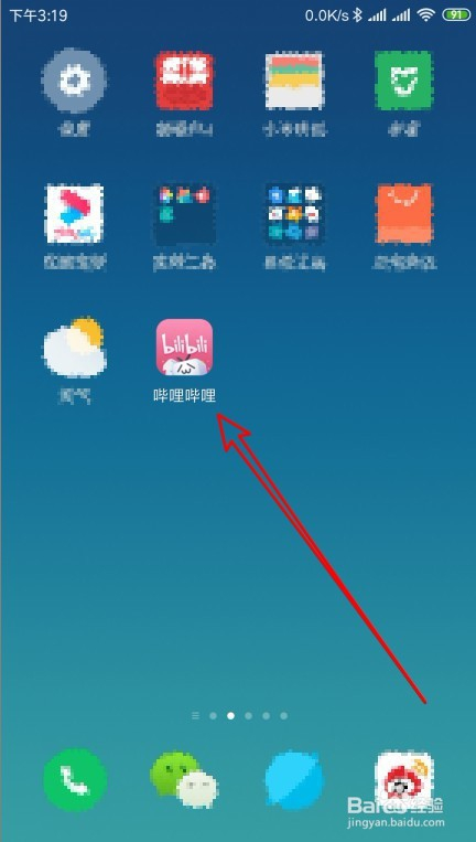 在手机屏幕上摆布滑动,找到安装好的哔哩哔哩APP的图标