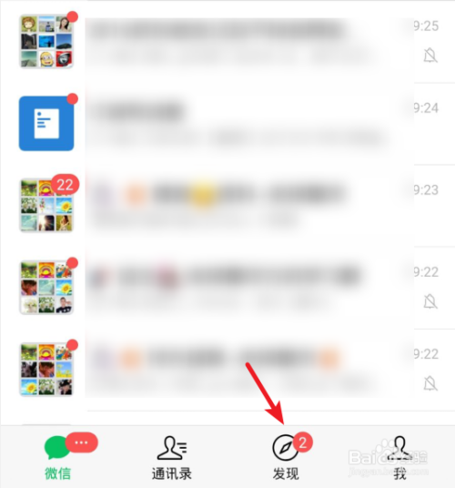 打开安卓的微信进入后,选择下方的发现的选项。