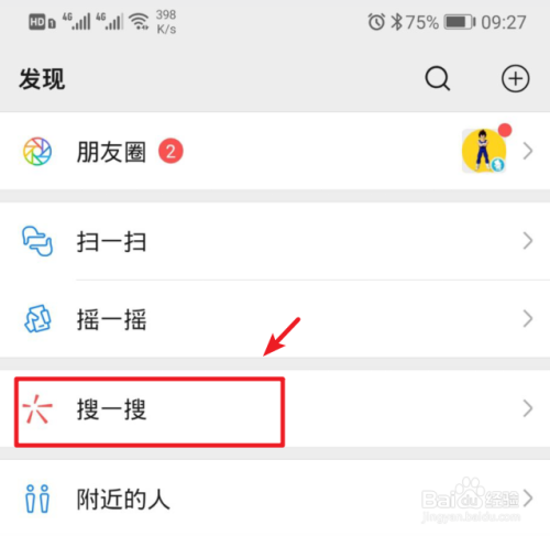 在微信发现界面,点击搜一搜的选项进入。