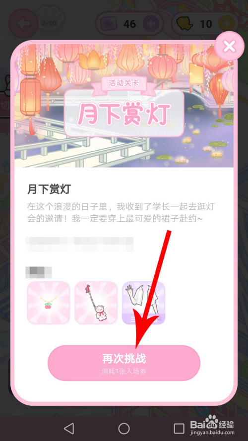 在手机上打开装扮少女,然后点击“月下赏灯”查看剧情介绍,按照提醒要穿可爱的裙子去赏灯,获得提醒后点击“介入挑战”