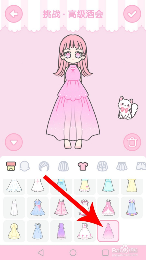 然后打开上衣界面,点选粉红色长裙,位置见下图