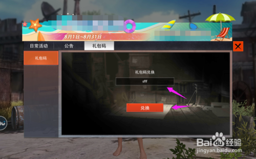 输入王牌战争礼包码后,点【兑换】下,如图。