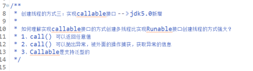 * 建立线程的体例三:实现callable接口 --》jdk5.0新增