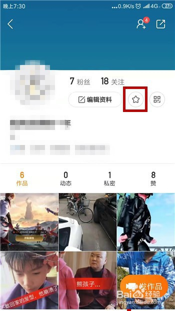 进入到快手小我本家儿页后点击编纂资料右侧的【保藏】,如图所示。