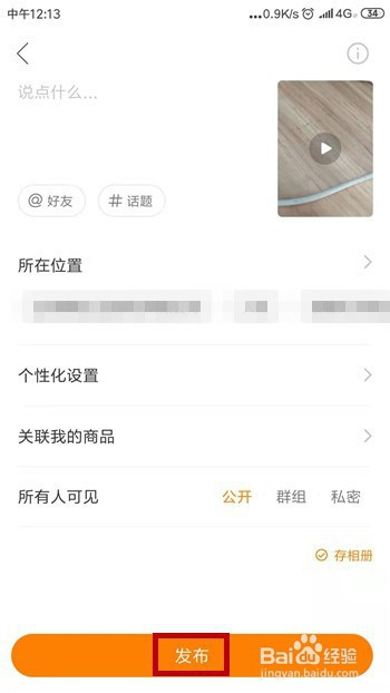 最后和日常平凡拍视频一样进入的是发布界面,对上传的视频进行简介后点击【发布】即可上传长视频。