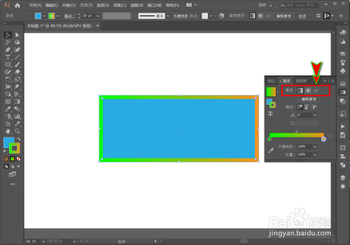 - 描边的渐变色类型可以选择为径标的目的渐变,也可以选择为线性渐变。