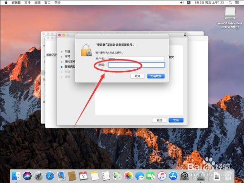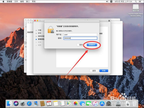 输入完当作密码后,点击右下角的“安装软件”